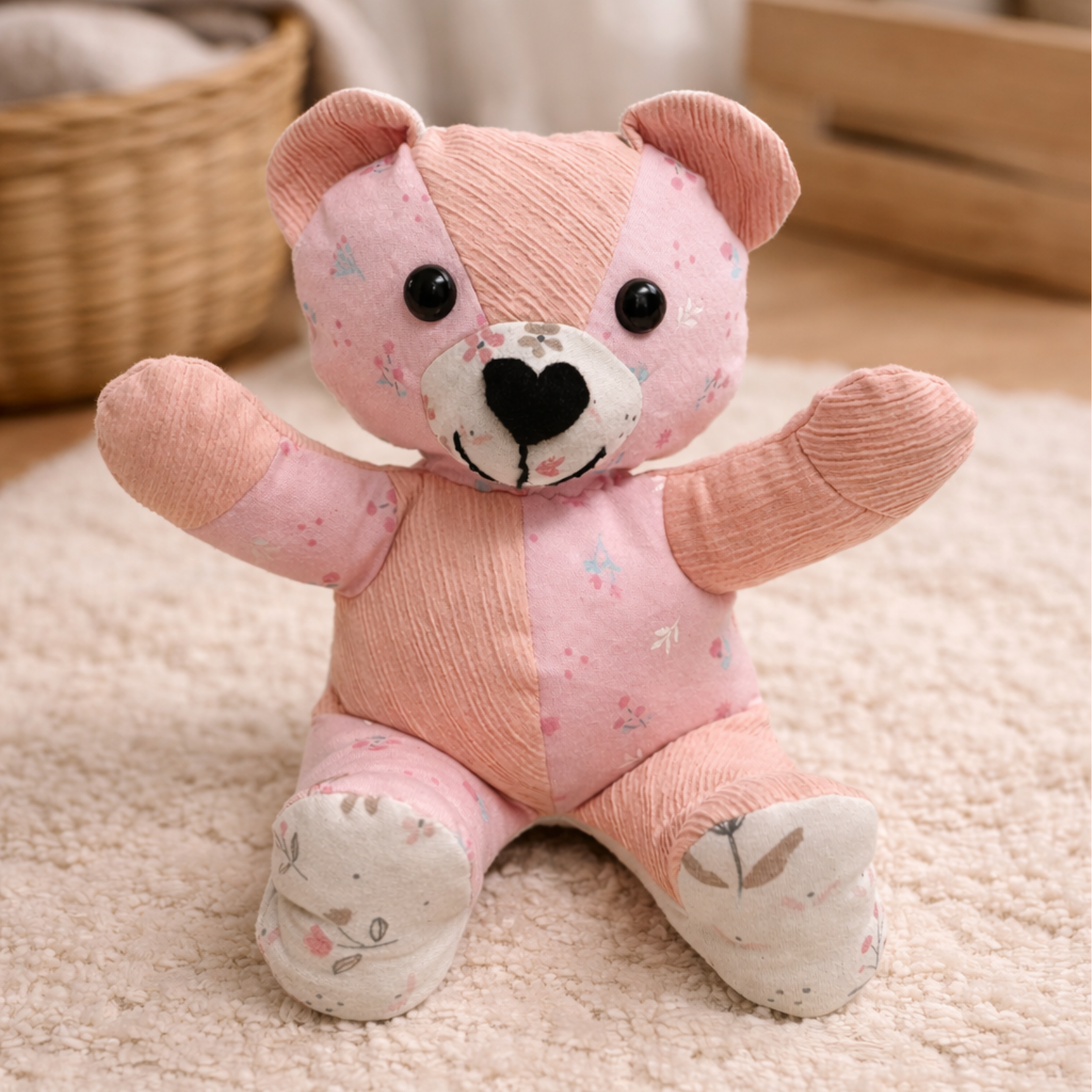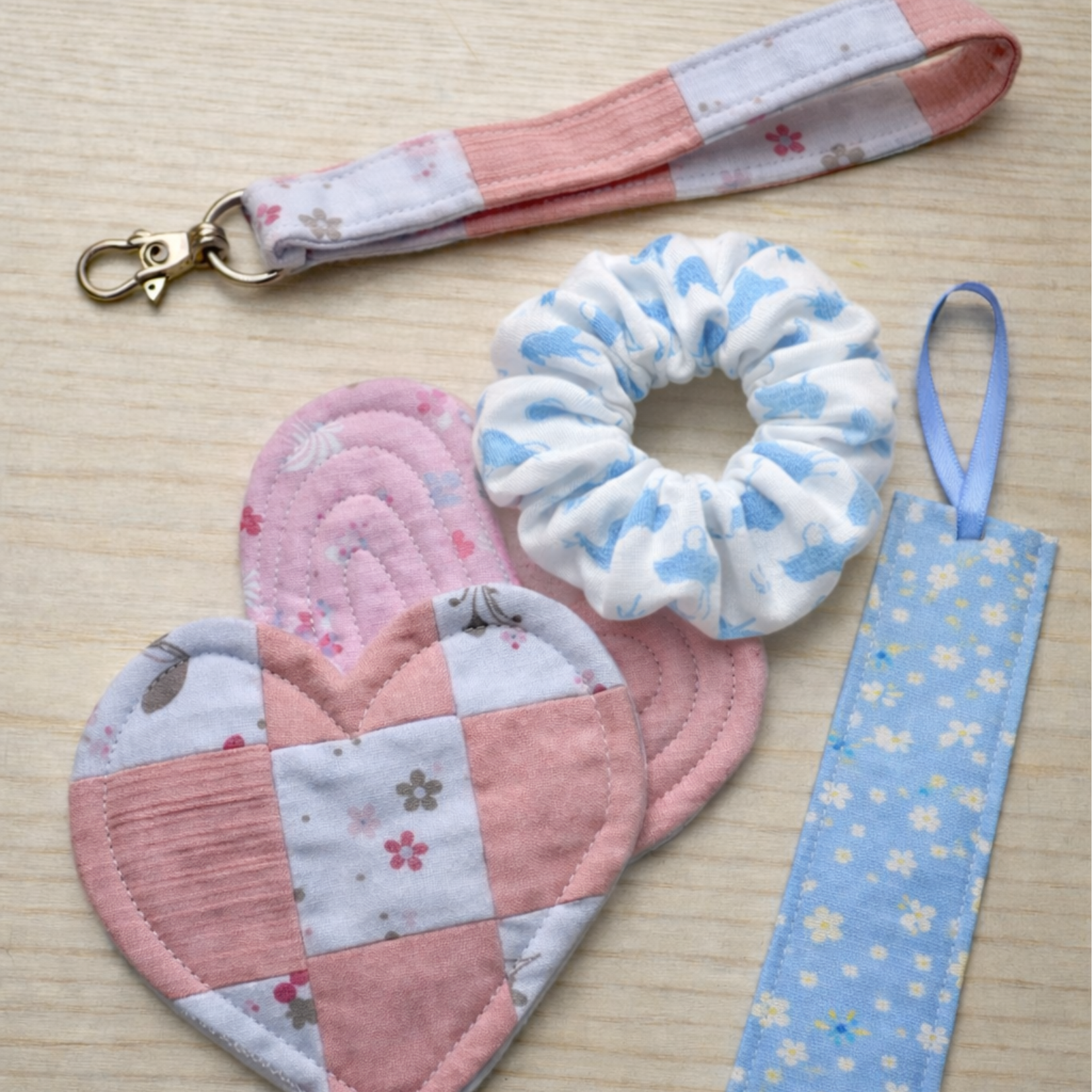 Z oblečení, dek, povlečení nebo jiných látek, které nám pošlete, šijeme nejen medvídky, mikiny a polštářky, ale i menší doplňky pro každý den. Taštičky na zip, podtácky, gumičky do vlasů, záložky do knížek nebo klíčenky a poutka jako malé talismany.
